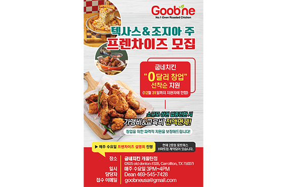 오븐 요리 마스터 굽네치킨이 텍사스와 조지아 주에 프랜차이즈를 모집한다.