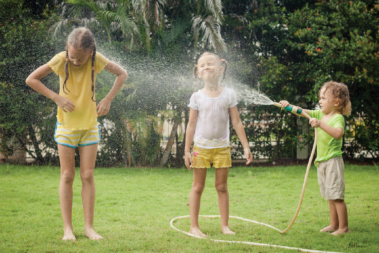 스프링클러, 미끄럼틀, 수영장 중에 어떤 것을 설치해야 할 지 고민하고 있다면 더 다양한 선택 사항들을 살펴보자. 공기를 주입해서 사용하는 대형 무지개, 물을 뿌리는 대형 공룡, 워터파크까지 아이들이 좋아할 만한 다양한 제품이 있다.