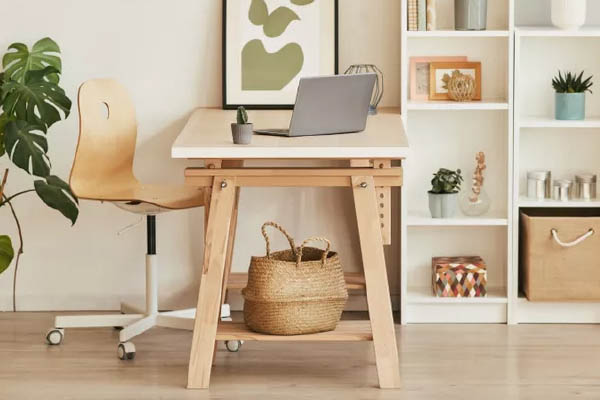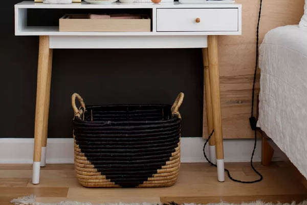 텍스처와 장식적인 효과, 추가 저장 공간으로 활용할 수 있는 위커 바구니를 책상 아래에 배치하라. 위커는 쉽고 손상되지 않는 견고하고 내구성이 훌륭한 소재란 점에서 한 번 구입하면 오랫동안 쓸 수 있다. 각종 사무 용품과 컴퓨터 케이블, 충전기, 책상 위를 어지럽히는 서류들을 정리하는 데에 위커 바구니를 사용하라.