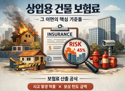 기본적으로 상업용 보험료는 **[보험사가 예측한 사고 발생 확률(손실률) × 건물의 보상 한도 금액]**으로 결정됩니다. 여기에 건물의 상태와 주변 환경에 따른 각종 가산금이나 할인 혜택이 적용됩니다.