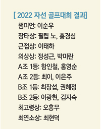 한편 이날 대회에서 영예의 1등 챔피언은 최종 합계 1언더파를 친 이순우 씨가 차지해 트로피와 상금 500달러를 수상했다. 그 밖에도 장타상에 필립 노, 홍경심 씨, 근접상에 이태하 씨 등이 선정됐다.
