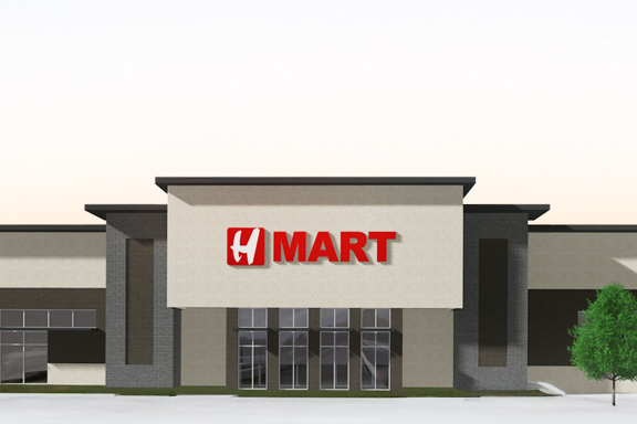 , 중심에는 H 마트가 약 4만 3천 스퀘어피트 규모의 대형 매장을 운영할 예정이다. 현재 외부 골조 공사는 한창 진행 중이며, 시공사인 Bob Moore
