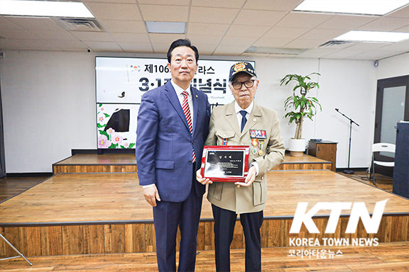 유공자이자 독립운동가 후손인 이관용 씨에게 감사패를 전달했다. 다만, 외부 출타로 인해 월남참전전우회 달라스지회 김충래 회장이 대리 수여했다.