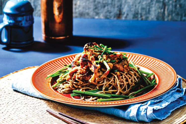 5. ③의 소바를 그릇에 담고 ④를 올린 후 ②의 깨 드레싱을 뿌린다.