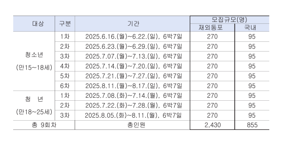 ▷ 청소년: 만 15세-18세(2025년 6월 16일 기준) 재외동포 청소년