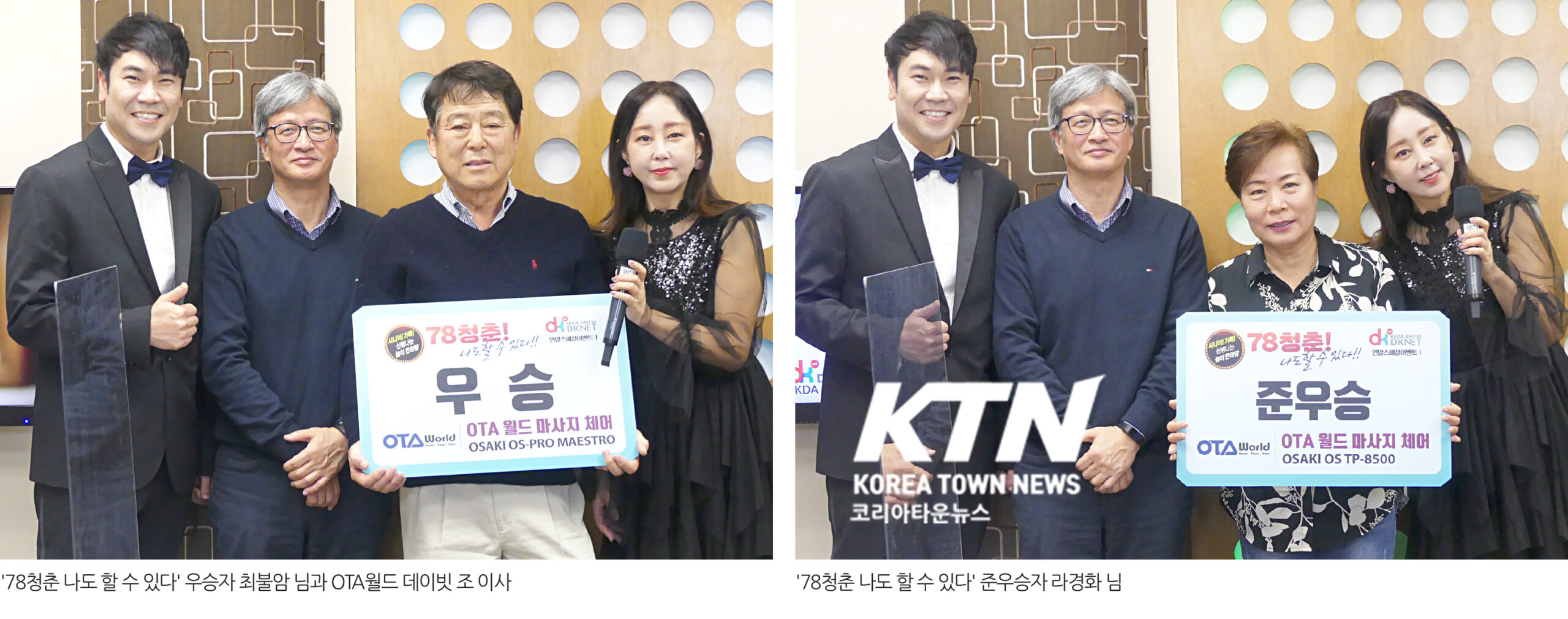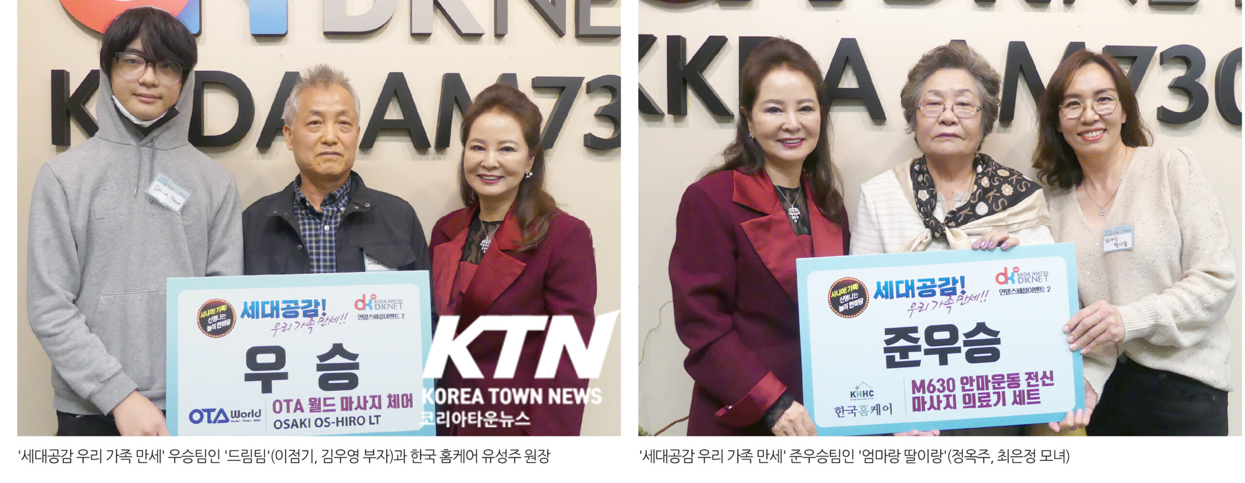 우승한 ‘드림팀’에게도 역시 OTA 월드 안마의자가 증정됐고, 준우승팀인 ‘엄마랑 딸이랑’에게는 한국 홈케어 제공 안마운동 전신 마사지 의료기 세트가 증정됐다.