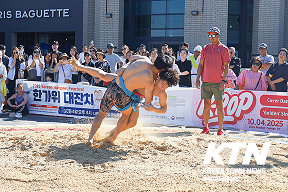 오후가 되자 ‘2025 코리언 페스티벌 & 한가위 대잔치’ 공식 개막 선언과 함께 씨름대회가 열렸다.
