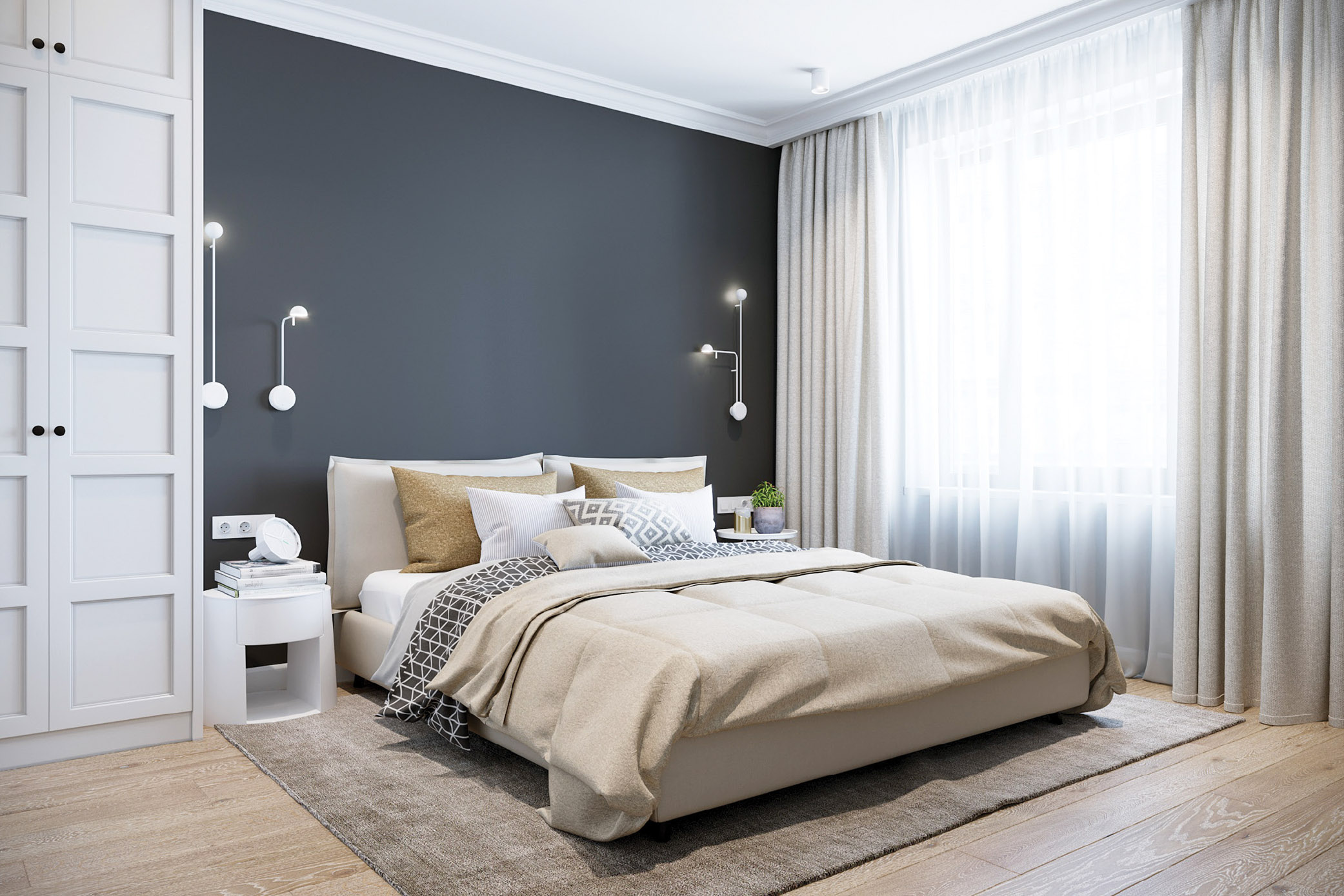 침실의 편안한 분위기는 어떤 페인트 컬러를 고르느냐에 따라 큰 영향을 받는다. 타니야 나약(Taniya Nayak) 인테리어 디자이너는 “벤자민 무어 클라우드 화이트(Benjamin Moore Cloud White) 혹은 셔윈 윌리엄스 시 솔트 컬러(Sherwin Williams Sea Salt)와 같이 차분한 톤을 선택하라”며 적절한 컬러 선택에 대해 말한다. 그녀는 “차분하고 아늑한 분위기를 만들기 위해서는 형편없는 페인트 작업을 하지 말아야 하며, 그러기 위해 좋은 품질의 페인터 테이프를 사용해 끝 마무리를 깨끗하고 선명하게 하는 과정이 꼭 필요하다”고 강조했다. 밝은 페인트 컬러는 공간을 더 넓어 보이게 하는 효과가 있지만 어두운 컬러는 아늑하고 포근한 분위기를 형성할 수 있다는 점도 알아 둘 것.