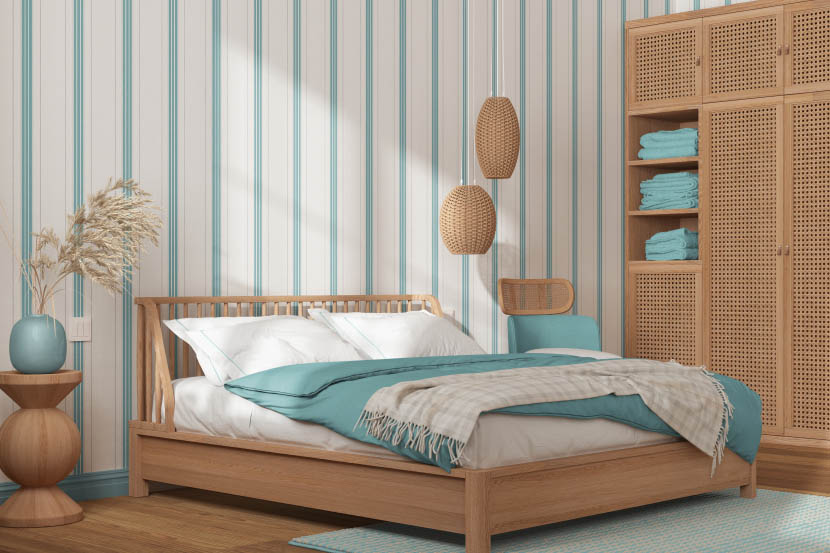 작은 침실을 꾸미기에 앞서 가장 처음 드는 생각이 아마 흰색 페인트로 벽면을 칠하는 것일지도 모른다. 하지만 공간이 작다는 이유로 벽 컬러를 포기할 필요는 없다. 앨라배마 주 몽고메리에서 활동하고 있는 애슐리 길브레스(Ashley Gilbreath) 인테리어 디자이너는 “큰 스케일의 패턴 또는 굵은 줄무늬를 벽지로 사용하는 것이 오히려 공간을 더 커 보이게 만든다”고 말한다.