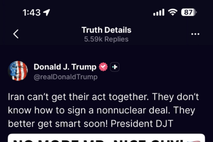 SNS에 총든 자기 합성사진과 함께 올려 도널드 트럼프 미국 대통령이 29일 "이란이 정신을 차리지 못하고…