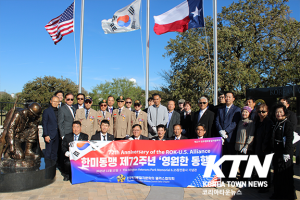11일 알링턴 베테랑 파크, 김원영 신임 민주평통 회장 등 관련인사들 참석민주평화통일자문회의(이하 민주평통) 달라스협의회(신임 회장 김원영)가 지난 11일(화) 알링턴 베테랑 파크 내 ‘한국전 참전용사 기념비’를 찾아 ‘한미동맹 72주년 기념식 및 참배 행사’를 가졌다. 이번 행사는 제22기 민주평통 공식 출범에 앞서 열린 첫 행사로, 한국전 참전용사의 희
